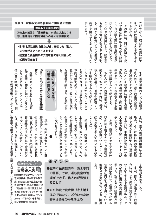 金融業務の総合ナビゲート誌「近代セールス」に、資金繰り診断士・古尾谷の連載記事が掲載されました。